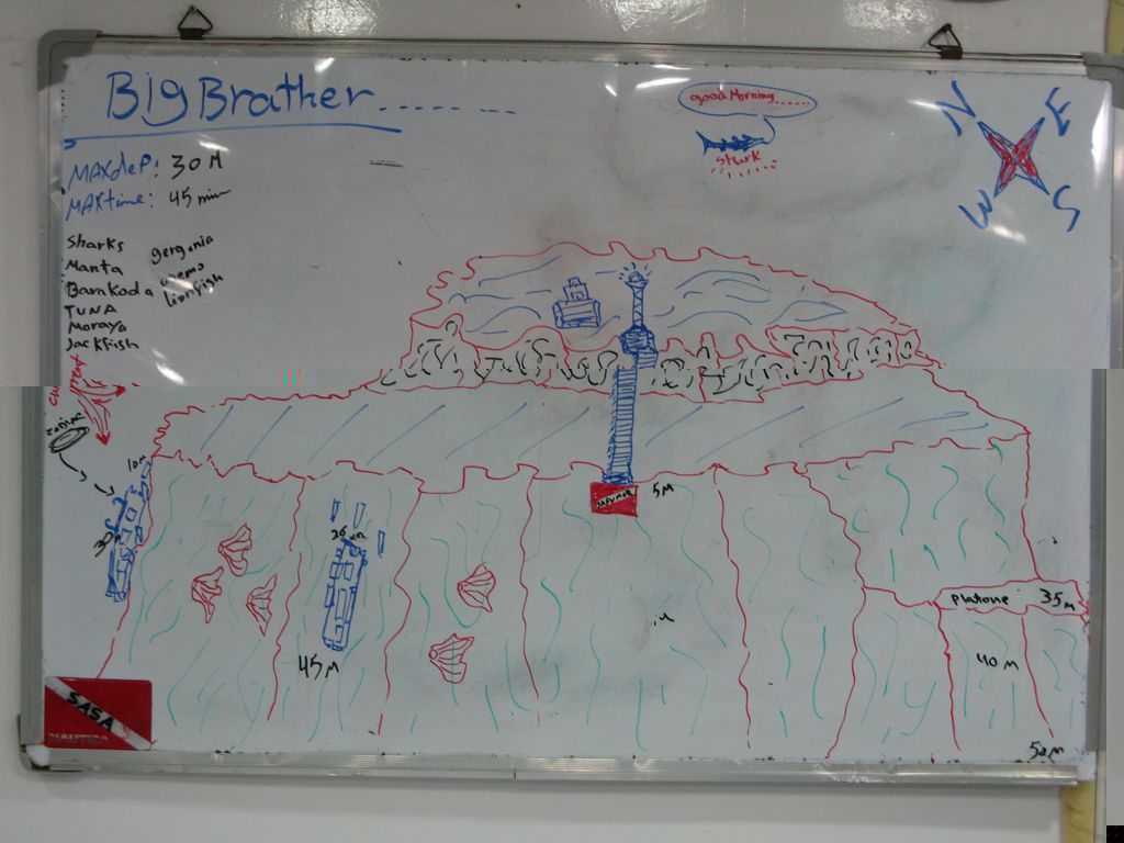 La"Brothers" am facut numai 3 scufundari pe zi deoarece cele de noapte nu se fac din cauza curentilor f. puternici si a rechinilor care seara ne dadeau tarcoale pe langa barca dar ziua dipareau!Ce pot sa spun este ca se merita si nu este asa de plictisitor si nu se compara cu cele facute de pe mal datorita faptului ca ajungi in locuri destul de "virgine", plus ca sunt mult mai spectaculoase adica curenti puternici, adancimi mari, multa fauna+pesti si nu numai..!
