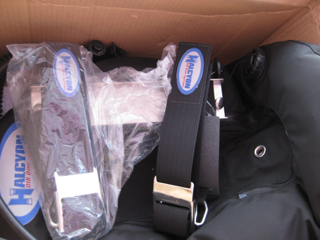 - harnasament - este mai moale, inelele sunt mai subtiri, cataramele inelelor sunt mai subtiri si nu au zimti, catarama de sold e facuta dintr-o tabla subtire, normala (cu catarama DSS poti usor sa ii spargi capul cuiva, e facuta dintr-o tabla la fel de groasa ca tabla backplate-ului Halcyon; din cauza ca backplate-ul are gauri direct de tabla, prin care harnasamentul (mai ales cel moale) aluneca usor, e nevoie de catarame de oprire.
