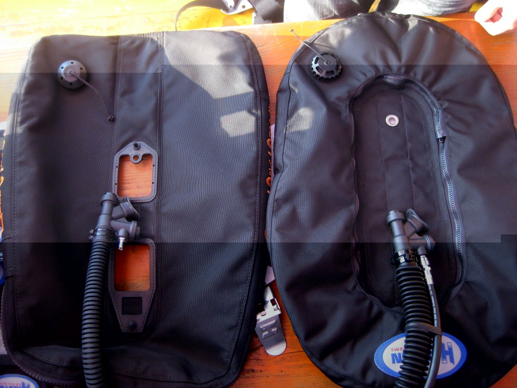 - wing: cordura folosita de Halcyon este mai subtire, camera de aer interioara este tot din cordura (si mai subtire), este in forma de O (un pic mai enervant in partea de jos a buteliei), valva are gauri mai largi (e mai expusa la environment), cand tragi de valva cursa Halcyon e mai scurta si nu simti un click, sfoara este mult mai subtire; sistemul de inflator foloseste exact acelasi inflator no-name ca si DSS (identic), pe un furtun mai gros si un pic mai lung; ca parti bune, ca am criticat destul, are un maner cusut si un ghid de cordura pentru furtunul de umflare.